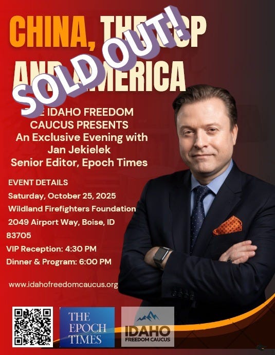 We’re honored to be brining Jan Jekielek to Idaho for this important weekend, where he’ll share insights on China, the Chinese Communist Party, and how their influence affects America and Idaho.